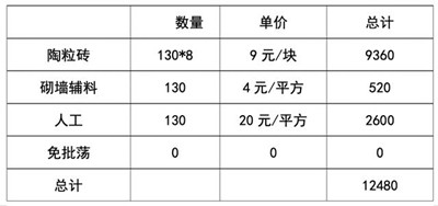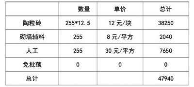 內(nèi)墻陶粒磚費用統(tǒng)計表