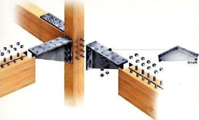 板銷(xiāo)連接:用板片狀硬木銷(xiāo)阻止被拼合構(gòu)件的相對(duì)移動(dòng),板銷(xiāo)主要在順紋受彎條件下傳力,具有較高的承載能力,故應(yīng)注意使其木紋垂直于拼合縫。